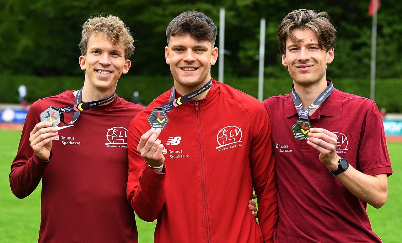 Silber ging in einem ebenfalls spannenden Rennen der Männer über 3x1000m an den Königsteiner LV. Jan Dillemuth, Christoph Schrick und Elija Ziem mussten sich nur dem Trio des LSC Höchstadt/Aisch geschlagen geben und freuten sich über Platz zwei.