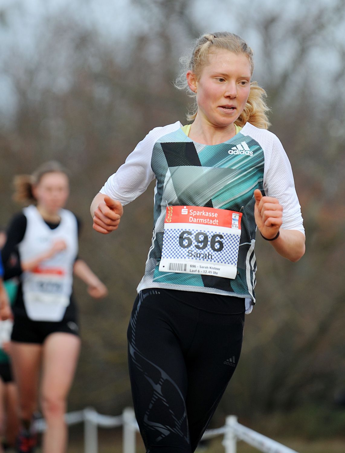 Im Rennen der Frauen und Juniorinnen (U23) standen 6600 Meter auf dem Wiesenparcours an der Heimstättensiedlung auf dem Programm. Hier setzte sich erwartungsgemäß die Favoritin 23:19 Minuten an Elena Burkard (Uni Tübingen bzw. LG Farbtex Nordschwarzwald) in 23:29,2 Minuten durch. Auf Position zwei folgte mit Miriam Dattke (LG Telis Finanz Regensburg) in 23:47,6 Minuten die schnellste Juniorin (U23). Das Podium der schnellsten drei Läuferinnen komplettierte nach 24:05,8 Minuten Deborah Schöneborn (LG Nord Berlin). Lokalmatadoren Lisa Tertsch (ASC Darmstadt/8. Gesamt) empfahl sich nach 24:24,9 Minuten als Dritte der U23 für einen EM-Start. Zu deutschen Mannschaft könnte auch eventuell noch Sarah Kistner (MTV Kronberg/12.) gehören. Die Berglaufspezialistin war in Darmstadt mit 24;43,9 Minuten fünftbeste Juniorin. Kistners Altersklassenkollegin Lisa Oed (SSC Hanau-Rodenbach/8. U23 in 25:25,3 min.) kommt fürs DLV-Team diesmal wohl nicht in Betracht.