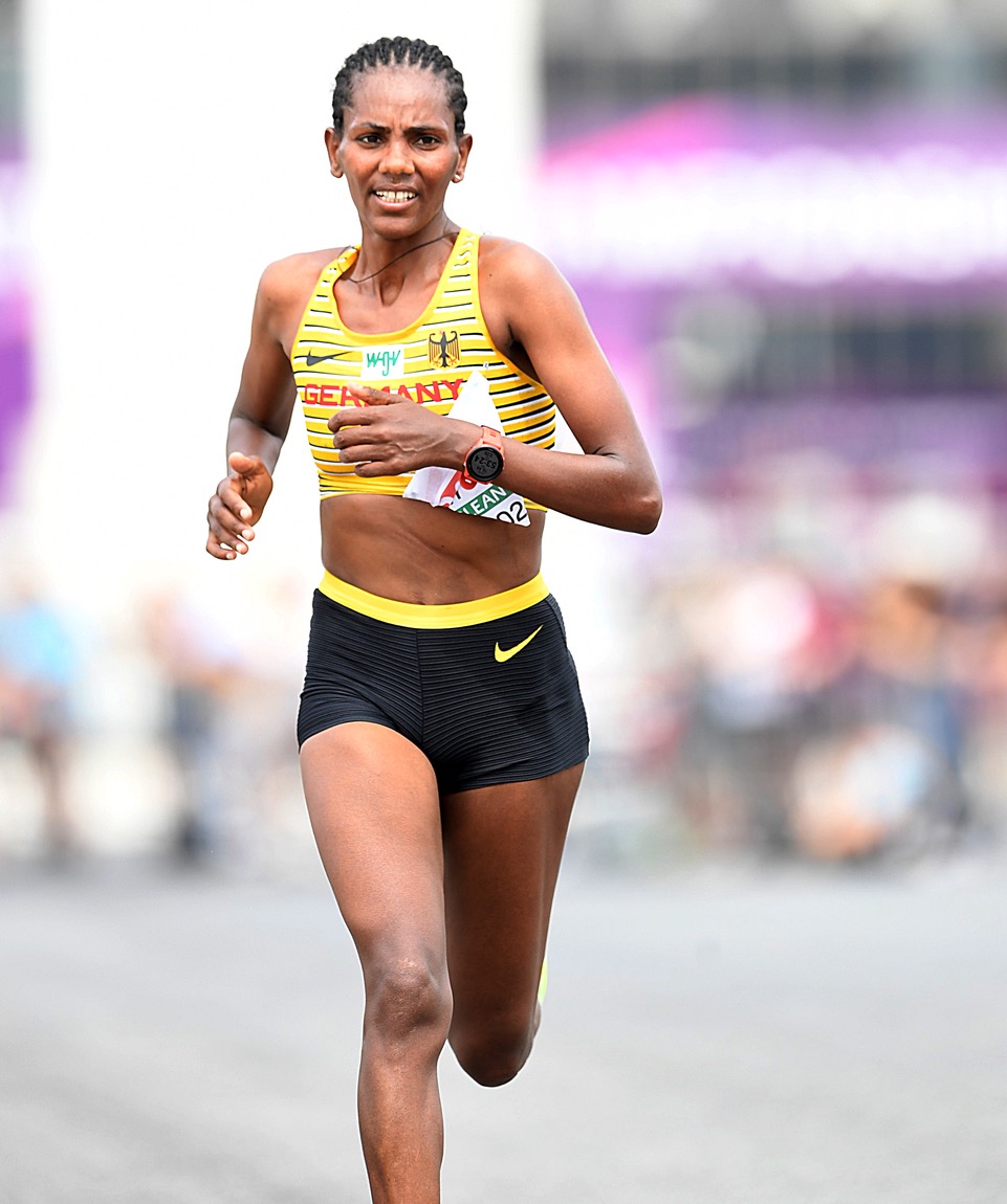 Zu diesem Zeitpunkt des Rennens war Melat Kejeta (Laufteam Kassel) bereits leider nicht mehr mit von der Partie. Die nominell stärkste deutsche Marathonläuferin begann das Rennen couragiert und positionierte sich bis Kilometer 13 in der Spitzengruppe. Ab diesem Zeitpunkt an wurden ihre gesundheitlichen Beschwerden jedoch zunehmend problematischer, sodass sie kurz vor der Halbmarathonmarke den Marathon leider abbrechen musste.