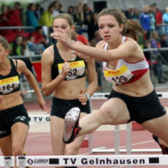Auf ihrer Spezialstrecke, den 80 Meter Hürden, kam Miriam Sinning von der LG Eintracht Frankfurt noch einmal mit dem Schrecken davon. Die DM-Dritte im Blockmehrkampf (Sprint W15) lief im Vorlauf in eine Hürde. Das Andenken an ihr Missgeschick: ein geschwollenes und leicht blau gefärbtes linkes Knie. Daraufhin zeigte sich Miriam Sinning weniger impulsiv bei der Hürdenannäherung und überquerte die Hindernisse zur Sicherheit etwas höher. Eine flotte Zeit kam trotzdem dabei heraus. In 11,61 Sekunden blieb sie nur sechs Hundertstel über ihrer Bestzeit von Mönchengladbach. Auch im Hochsprung, einer weiteren Stärke der vielseitigen Schülerin, hielt das geschwollene Knie den Belastungen stand. "Vor dem ersten Sprung hab ich das Knie kurz gekühlt. Ich hab es zwar beim Absprung gemerkt, aber mehr nicht." Übersprungene 1,60 Meter im zweiten Versuch bedeuteten den nächsten Titel für den Schützling von Trainer Albert Junker. Miriam Sinnings wertvollste Leistung am ersten Tag wurde nicht mit einer Medaille belohnt. 5,31 Meter im Weitsprung bedeuteten Rang fünf. Ihre alte Bestleistung von den Deutschen Blockmeisterschaften in Mönchengladbach, 5,22 Meter, hielt somit gerade einmal eine knappe Woche.