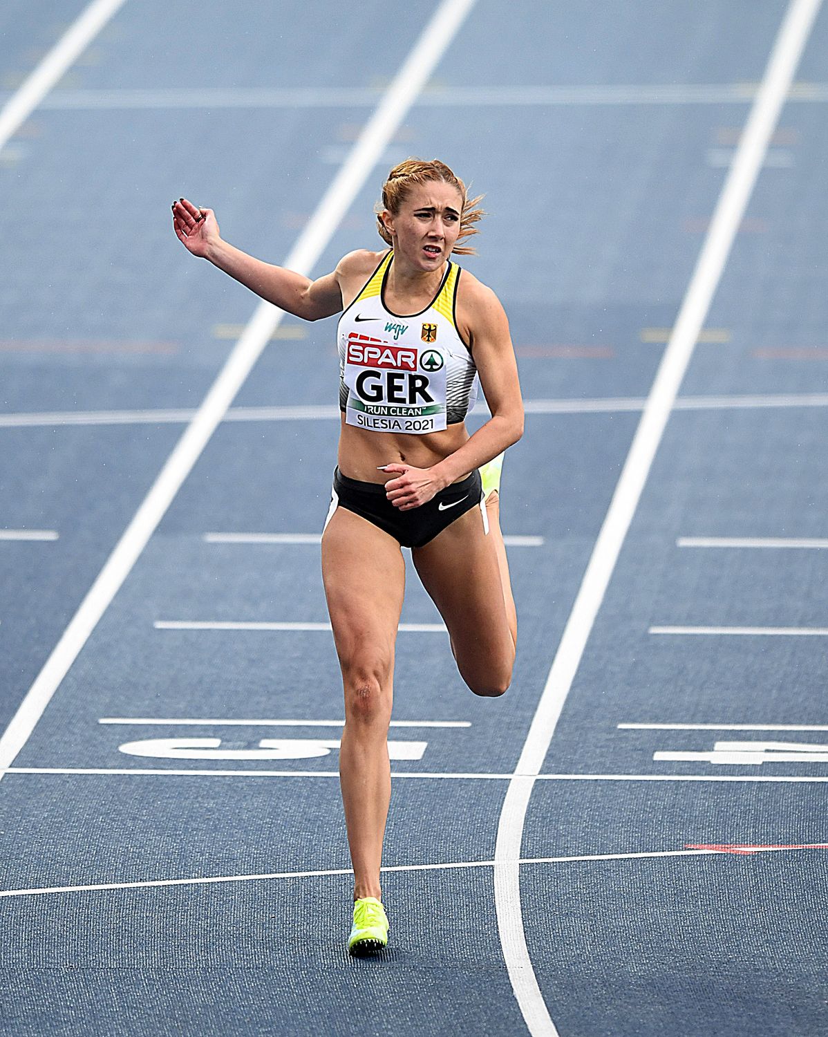 Nach dem verunglückten Staffelstart am Samstag war Rebekka Haase (Sprintteam Wetzlar) am Sonntag noch im Einzel über 200 Meter im Einsatz. Haase reiste mit einer Saisonbestmarke von 22,80 Sekunden nach Schlesien an und war damit die Führende in der Meldeliste. Mit glatten 23,00 Sekunden kam Haase als Dritte nicht ganz an diese Vorleistung ran. Direkt vor der Sprintteam Athletin platzierte sich die junge Italienerin Dalia Kaddari, die mit 22,89 Sekunden an die Spitze der europäischen Jahresbestenliste der U23 stürmte. Für die Siegerin Beth Dobbin leuchtete mit 22,78 Sekunden ein „SB“ auf der Anzeigetafel auf.