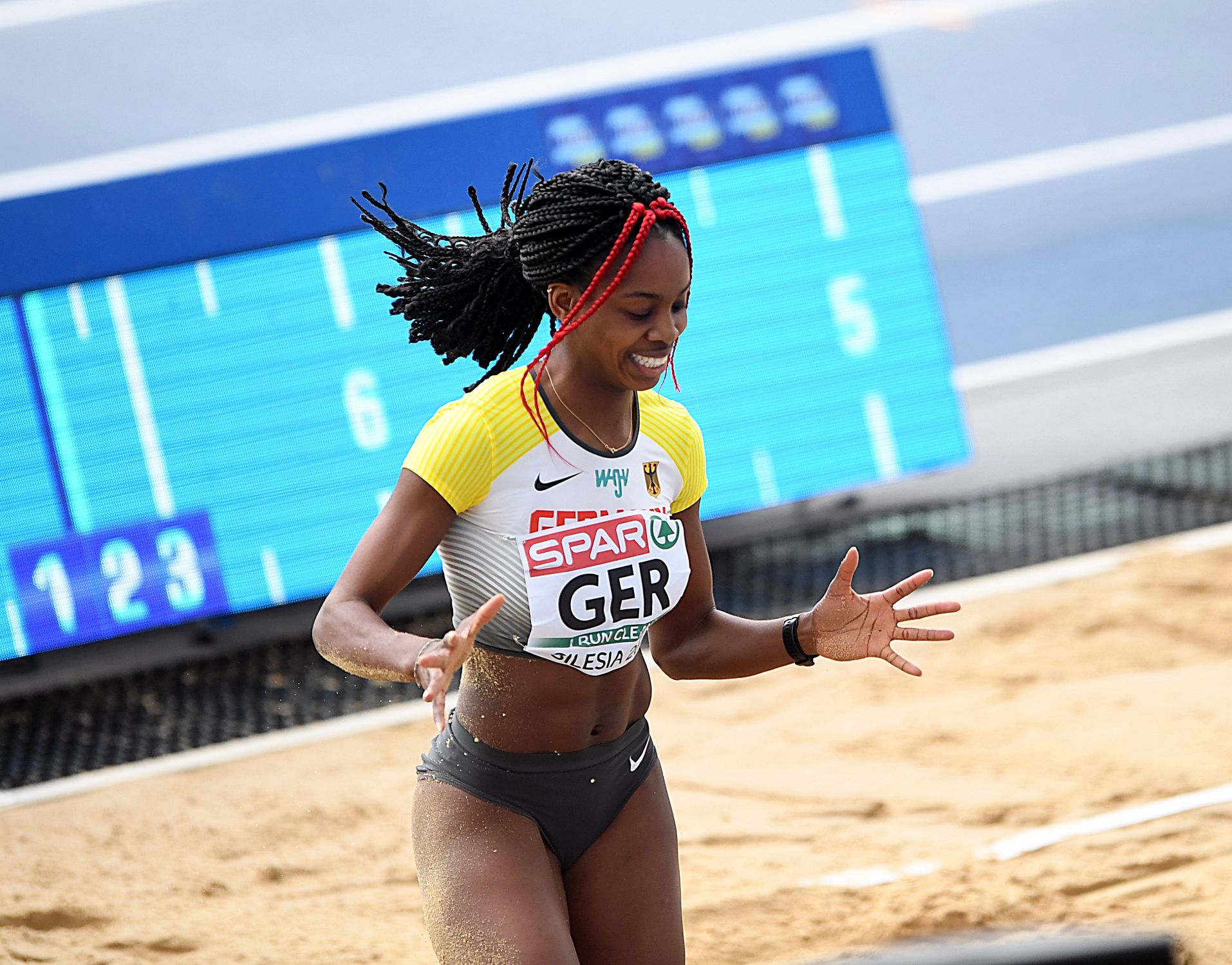 Weitspringern Maryse Luzolo holt am zweiten Tag beim Team Europa-Cup in Chorzow einen der wenigen Disziplinsiege für Deutschland und stellt dabei ihre Bestleistung ein - Rebekka Haase wird Dritte über 200 Meter - Marc Reuther über 800 Meter Fünfter