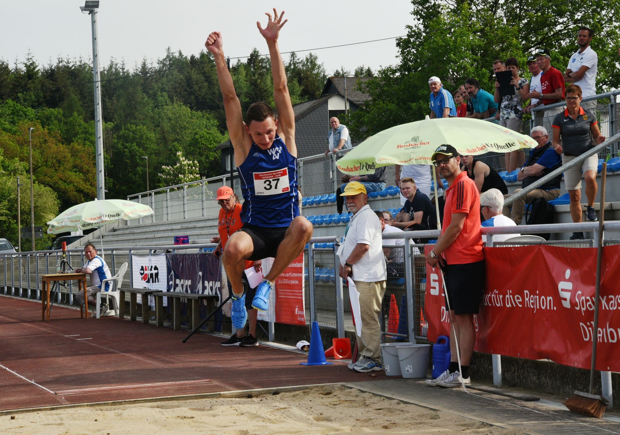 Zum 5. Mal fand am Samstag in Herborn das Sparkassen-Sportfest für Sprinter und Weitspringer statt. Klein aber fein, wurde mit kleinem Preisgeld-Etat ein hochklassig besetztes Meeting im renovierten Rehbergstadion durchgeführt. Höhepunkt war zum Abschluss der A-Wettkampf im Weitsprung. Gleich im ersten Versuch landete Florian Oswald (LG Region Karlsruhe) bei 7,62 Meter und verbesserte den Stadionrekord um vier Zentimeter. Im letzten Versuch konterte Sascha Menn (LG Kindelsberg Kreuztal mit der Siegesweite von 7,64 Meter und steigerte seine persönliche Bestleistung um 23 Zentimeter. Lennart Genz (Wiesbadener LV) wurde Fünfter mit 7,08 Meter.