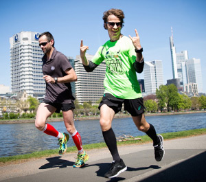 Die Wetterprognosen, vorausgesagt werden Wind und Regen, sind jedoch nicht besonders günstig. Doch Neuschwander fühlt sich in Topform, ist entsprechend optimistisch. „Mehr als 70 Kilometer sollten es werden.“ Er hofft auf eine gute Tagesform. Wie bei seinem Abschlusstest über 60 Kilometer vor zwei Wochen. „Unter Wings for Life-Bedingungen hätte ich knapp 69 Kilometer geschafft.“ Ein Aufruf über Facebook hatte ihm Mitläufer auf der kompletten Strecke zwischen Frankfurt-Nied und Mühlheim beschert. Das Tempo von Neuschwander werden in Darmstadt, wenn überhaupt, nur wenige mitgehen können. Er hofft trotzdem auf Begleiter bis Kilometer 30 – und seinen guten Freund Moritz auf der Heide, der vor kurzem den dritten Platz bei den Deutschen 100 Kilometer-Meisterschaften belegte. Energieriegel und Fruchtsmoothies trägt Neuschwander in einer Gürteltasche bei sich. Jenseits der 50 Kilometer unterstützen ihn Freunde am Streckenrand. „Das letzte Jahr hat gezeigt, dass jeder Meter wichtig ist.“ Das Laufen begleitet Neuschwander auch in seinem Beruf als Einzelhandelskaufmann. Viermal pro Woche ist Neuschwander im Frankfurter Laufshop anzutreffen, er leitet zudem einen Lauftreff am Montagabend. Was Wettkämpfe betrifft, bewegt sich Neuschwander gern abseits des Mainstreams, im Gelände oder bei Hindernisläufen wie den Urbanian Runs. 2013 gewann er WM-Silber im Ultra Trail über 77 Kilometer. „Es gibt mittlerweile so viele unterschiedliche Events. Da finde ich immer neue Herausforderungen.“ Seine Planungen für den Herbst klingen da fast schon profan. „Ich will meine Marathonbestzeit verbessern.“ Sein persönlicher Rekord, 2:20:28 Stunden, datiert aus dem Jahr 2013. „Eine Zeit unter 2:20 Stunden halte ich für realistisch.“ Tammo Lotz
