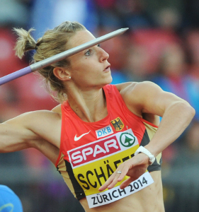 Carolin Schäfer (TV Friedrichstein/Siebenkampf): In der DLV-Mannschaftsbroschüre sagt Carolin Schäfer: „Ich will 6.500 Punkte erzielen.“ Damit würde die Polizeikommissaranwärterin ihre Bestleistung aus Götzis, 6.547 Punkte, bestätigen – und sich auf ziemlich sicherem Kurs in Richtung Podium befinden. Denn nur dreimal hätte ihr Hessenrekord aus dem österreichischen Mehrkampf-Mekka bei Weltmeisterschaften nicht für einen Platz auf dem Treppchen gereicht, zuletzt vor vier Jahren in Daegu, als die Ratingen-Zweite Jennifer Oeser (Bayer Leverkusen/6.306), die in Peking nach der Geburt ihres Sohnes Jakob im Oktober 2014 wieder zum deutschen Aufgebot zählt, mit 6.572 Zählern Dritte wurde. In der Vorbereitung auf Peking sprang Carolin Schäfer beim Thorpe Cup mäßige 5,98 Meter weit, sprintete die 100 Meter Hürden bei der DM in Nürnberg in 13,58 Sekunden und sprang mit schweren Beinen 1,75 Meter hoch. Die größte Entwicklung hat Carolin Schäfer im Kugelstoßen gemacht. In Götzis steigerte sie ihre Bestleistung um fast 70 Zentimeter auf 14,06 Meter. 49,08 Meter mit dem Speer ließen den „Ausfall“ bei der EM in Zürich vergessen, als sie mit schwachem 44,19 eine Top-drei-Platzierung verspielte und Vierte wurde.