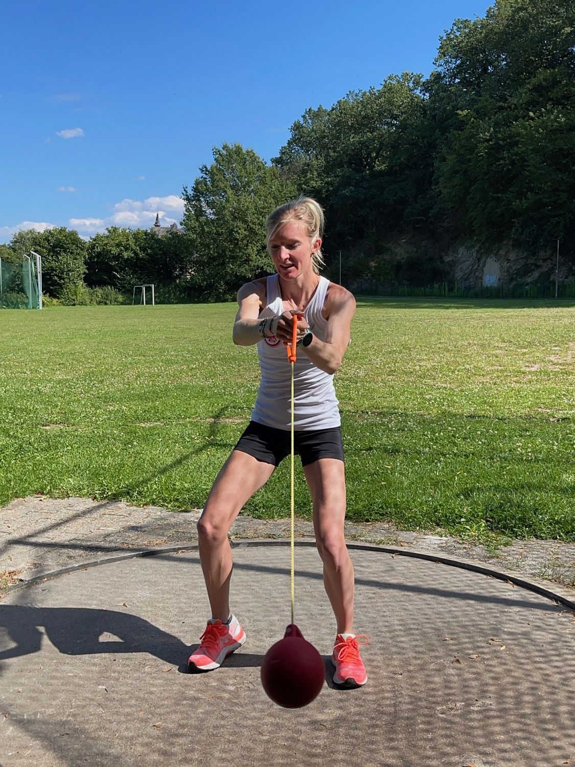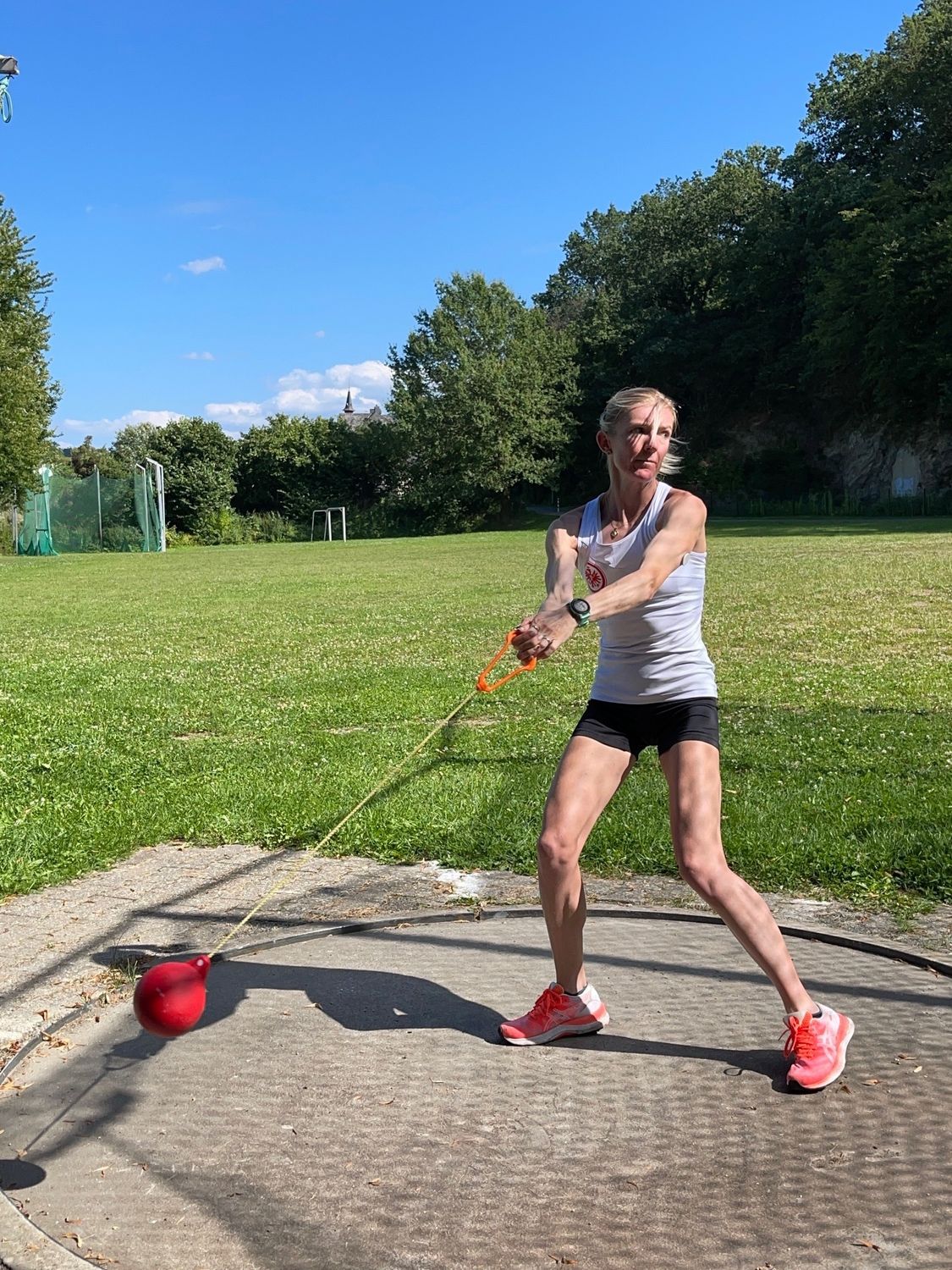 Vor gerade mal einer Woche hat sie in der wahren Hitzeschlacht von Tokio/Sapporo den Olympia Marathon erfolgreich beendet und uns alle mit ihrem riesigen Kämpferherz begeistert. Und schon am Wochenende darauf steht sie mit HLV Vizepräsident Martin Rumpf in Selters im Hammerwurfkäfig, um ganz neue Impulse der Leichtathletik zu erfahren. Gemeinsam mit ihren Lehrgangskolleg:innen, stand für sie am Samstag der Block Wurf auf dem Lehrgangsprogramm.