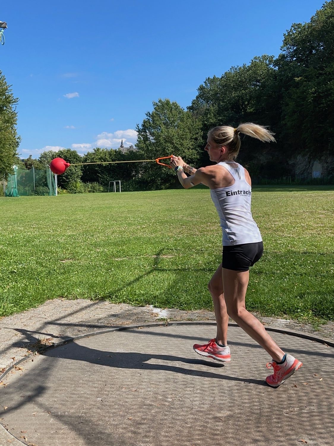 Zu dem Erlebnis Hammer sagt Katharina Steinruck: „Ich habe alle Wurfdisziplinen schon mal gemacht. Speer habe ich sogar sehr gemocht, aber Hammer habe ich tatsächlich noch nie ausprobiert. Sehr spannend.“