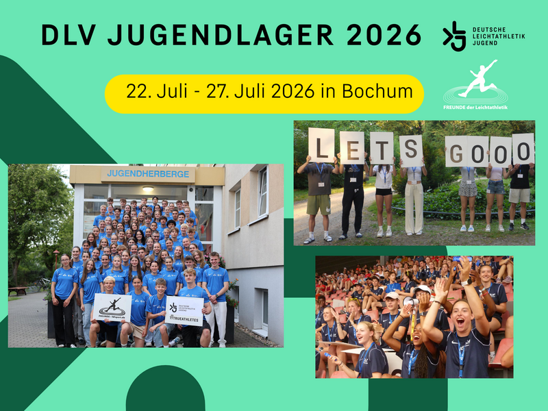 Auch in 2026 findet es statt – das DLV-Jugendlager. Im Rahmen der Deutschen Leichtathletik-Meisterschaften in Bochum kommen hier jugendliche Athlet*innen aus allen Landesverbänden Deutschlands zusammen und verbringen eine sport- und erlebnisreiche Zeit! Der Hessische Leichtathletik-Verband kann vier Jugendliche entsenden und weitere Nachrücker*innen benennen, sollte ein anderer Landesverband seine Plätze nicht aufbrauchen. Dazu schreibt die HLV-Jugend diese Plätze für hessische Teilnehmer*innen der Jahrgänge 2009 bis 2011 aus und freut sich über die Bewerbungen. Das Jugendlager dient der Anerkennung sportlicher Leistung, geleisteter Jugendarbeit oder in anderer Weise herausragender Athleten. Daher wünschen wir uns viele Bewerbungen von interessierten Jugendlichen im entsprechenden Alter! Das DLV-Jugendlager findet vom 22. Juli bis 27. Juli in Bochum statt.